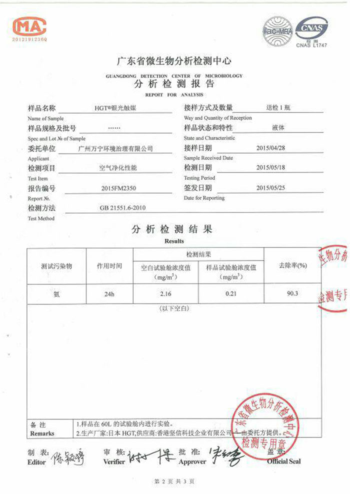 廣州萬(wàn)寧環(huán)境治理有限公司前身是廣州市匡琦貿(mào)易有限公司,成立于2002年,屬香港堅(jiān)信科技企業(yè)公司中國(guó)地區(qū)營(yíng)運(yùn)總部,負(fù)責(zé)環(huán)境治理系列產(chǎn)品的進(jìn)口、技術(shù)指導(dǎo)、工程施工及招商工作。2015年日本總部成功開(kāi)發(fā)出HGT超級(jí)銀光觸媒,該產(chǎn)品利用飛米技術(shù)將二氧化鈦和銀離子結(jié)合,產(chǎn)生強(qiáng)大的氫氧自由基,能在一分鐘內(nèi)凈化空氣。我公司作為HGT品牌中國(guó)營(yíng)運(yùn)總部,獨(dú)家銷(xiāo)售最新一代頂尖技術(shù)光觸媒產(chǎn)品,新產(chǎn)品徹底去除甲醛、強(qiáng)效殺...